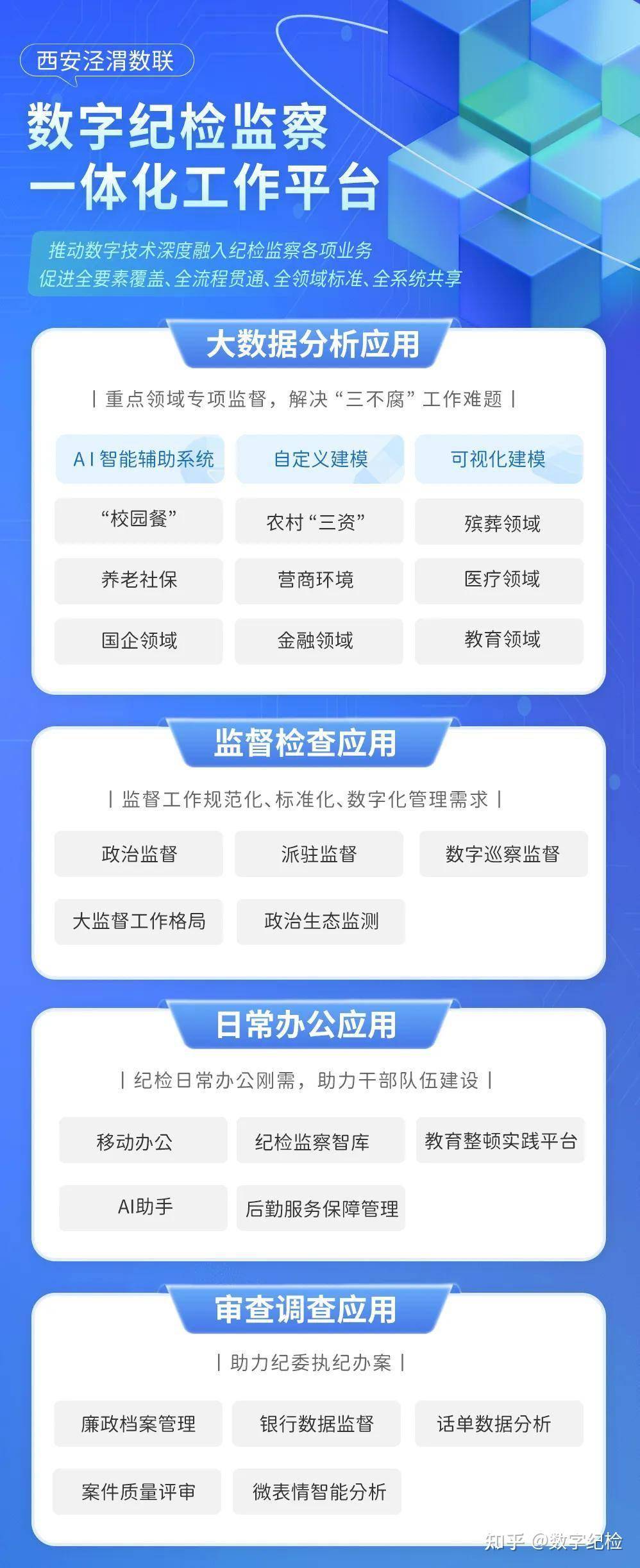 西安泾渭数联聚焦“全流程、全要素,数字纪检监察体系”研究,推动数字技术深度融入纪检监察各项业务,通过业务模型、自定义模型、AI模型等大数据监督工具,构建数字纪检、清廉国企、清廉医院、清廉学校、清廉银行等纪检监察一体化工作解决方案。